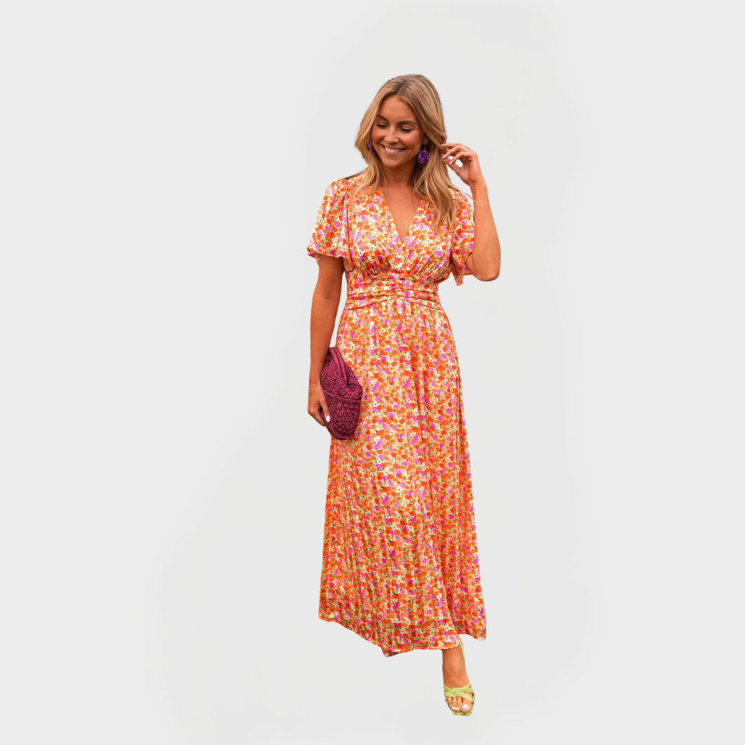 Objevte romantické letní šaty s květinovým vzorem, které zvýrazní vaši ženu a dodají dny lehkost i eleganci. Tyto dlouhé šaty s pestrým květinovým potiskem působí svěže a stylově pro každou příležitost. Řasený dekolt a elastický pas jemně kopírují křivky a dodávají postavě šarm.