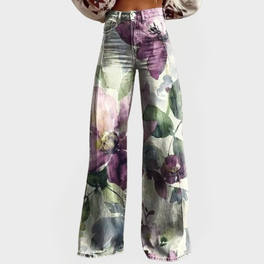 Džíny s Širokými Nohavicemi Retro Květinový Vzor Stylové
